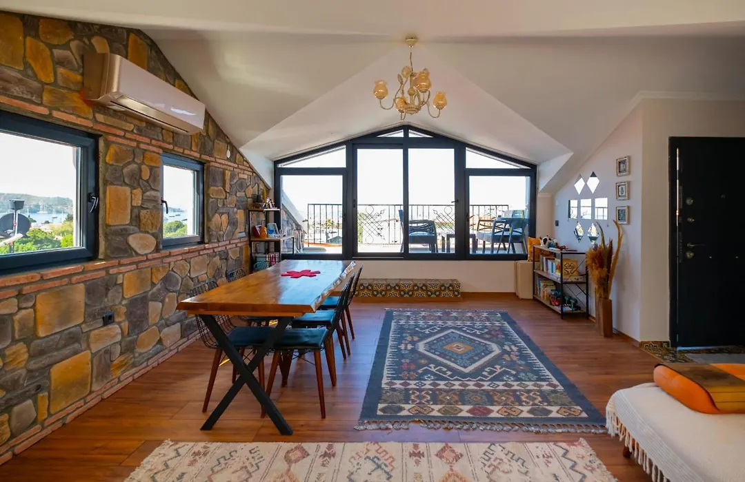 Ze všech pokojů apartmánu Penthouse In Fethiye je výhled na zahradu. Tento apartmán zve hosty do 2 ložnic.